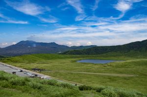 Kusasenri and steaming volcano, Mt Aso